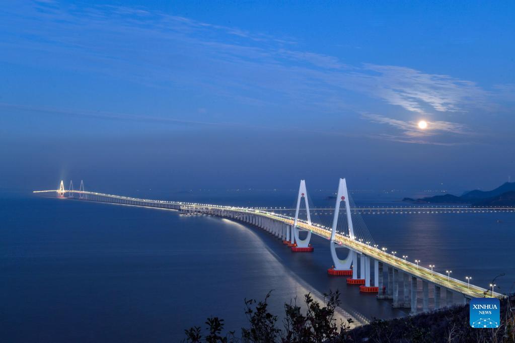 Photo taken on Dec. 19, 2021 shows the full moon in Zhoushan, east China's Zhejiang Province. The last full moon in the year of 2021 appeared on Sunday, the sixteenth day on the eleventh month of the Chinese lunar calendar. (Photo by Shen Lei/Xinhua)