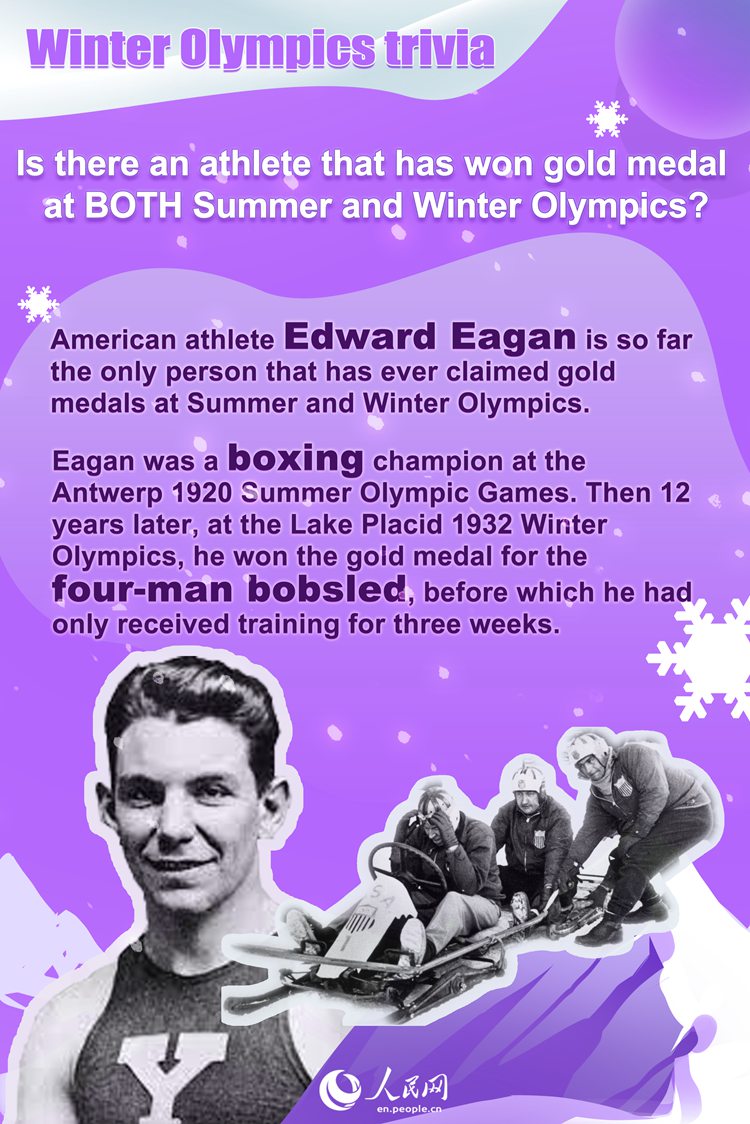 Eagan was a boxing champion at the Antwerp 1920 Summer Olympic Games. Then 12 years later, at the Lake Placid 1932 Winter Olympics, he won the gold medal for the four-man bobsled, before which he had only received training for three weeks.