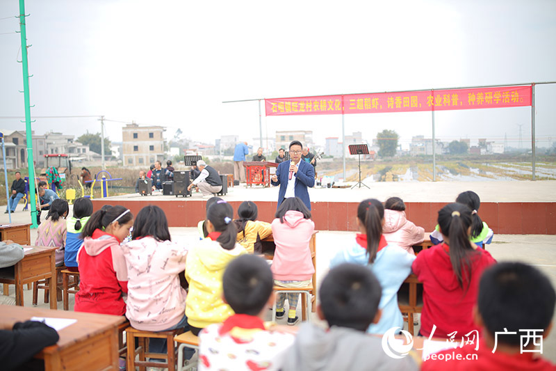 Students take part in a farming culture activity in Wanglong village, Shizui town, Guigang city, south China’s Guangxi Zhuang Autonomous Region. (People’s Daily Online/Wu Mingjiang)