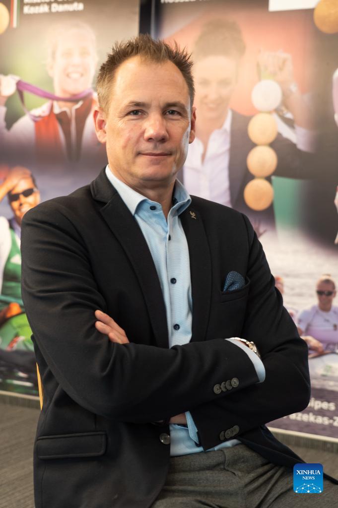 Krisztian Kulcsar, President of the Hungarian Olympic Committee, poses for photos in Budapest, Hungary, Dec. 20, 2021. (Photo by Attila Volgyi/Xinhua)