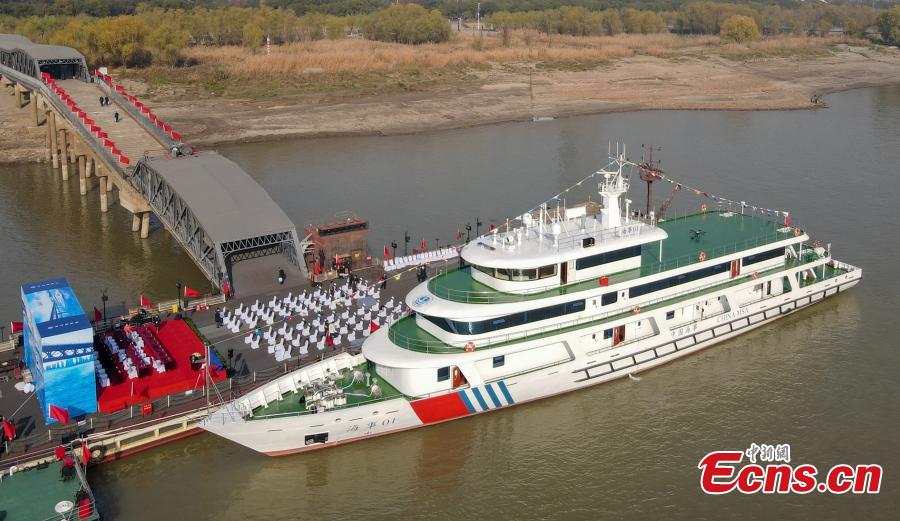 Haishi 01, the large comprehensive emergency command vessel, is put into service in Wuhan, central China's Hubei Province, serving as a maritime enforcement platform, Dec. 21, 2021. (Photo: China News Service/Zou Hao)