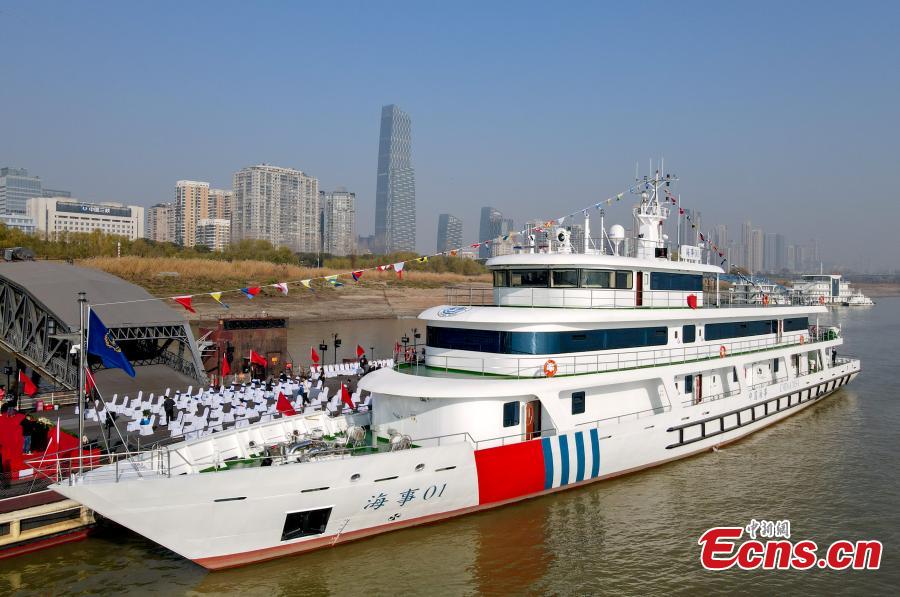 Haishi 01, the large comprehensive emergency command vessel, is put into service in Wuhan, central China's Hubei Province, serving as a maritime enforcement platform, Dec. 21, 2021. (Photo: China News Service/Zou Hao)