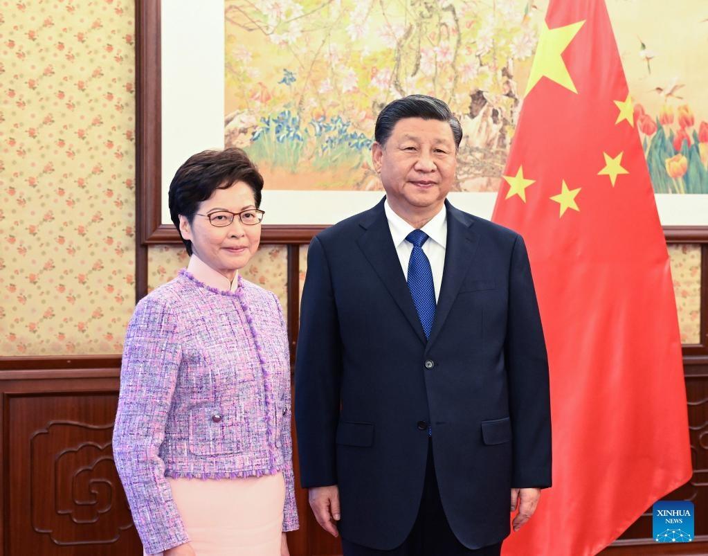 Lam has also led the HKSAR government in successfully holding elections of the Election Committee and the Legislative Council (LegCo), resolutely implementing the Hong Kong national security law, and taking active measures to promote the HKSAR's integration into the overall development of the country and comprehensively deepen its exchanges and cooperation with the mainland, Xi said.