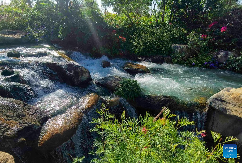 Reclaimed water pours out from Guangzhou Lijiao sewage treatment plant in Guangzhou, south China's Guangdong Province, Nov. 24, 2021. Traditional sewage treatment plants are being transformed into ecological underground sewage treatment plants in Guangzhou, to improve land utilization and tackle problems of secondary pollution.