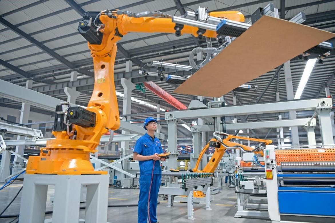 A technician debugs an automatic production device in a workshop of the Nantong Yuetong CNC Equipment Co., Ltd., Hai’an, east China’s Jiangsu province, May 24, 2021. (People’s Daily Online/ Jiang Ming)