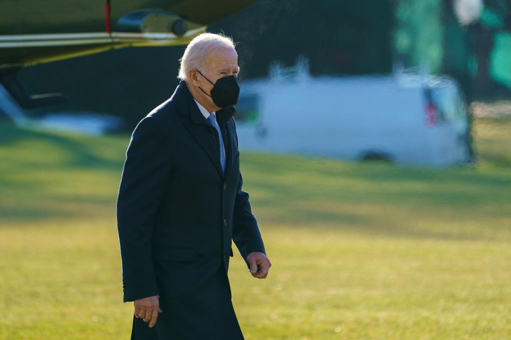 U.S. President Joe Biden returns to the White House in Washington D.C., the United States on Dec. 20, 2021. (Photo by Ting Shen/Xinhua)