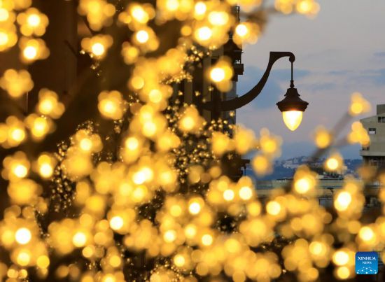 Light installations are seen at a Christmas market in downtown Beirut, Lebanon, on Dec. 25, 2021. (Xinhua/Liu Zongya)