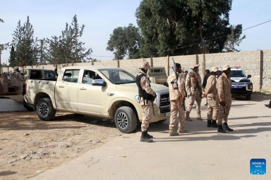 Military personnel are seen in Ain Zara area in southern Tripoli, Libya, Dec. 25, 2021. A number of roads in southern Tripoli were reopened Saturday after they were closed due to recent military mobilization. (Photo by Hamza Turkia/Xinhua)