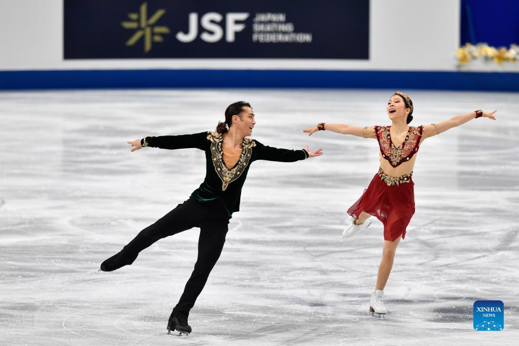 Muramoto Kana (R) and Takahashi Daisuke compete during the ice dance competition at the All-Japan Figure Skating Championships held in Saitama, Japan, Dec. 25, 2021. (Xinhua/Zhang Xiaoyu)
