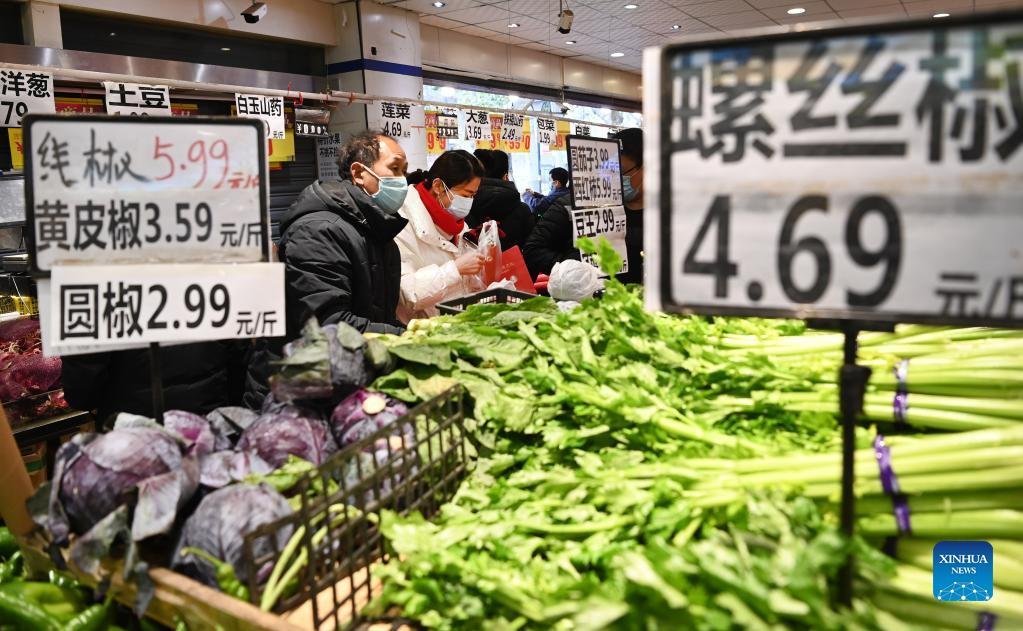 Citizens buy vegetables at a supermarket in Xi'an, northwest China's Shaanxi Province, Dec. 26, 2021. Xi'an imposed closed-off management for communities and villages last Thursday to curb the spread of the latest COVID-19 resurgence. (Xinhua/Tao Ming)