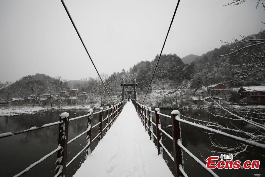 Snow-capped Shadong village looks picturesque at the foot of Fanjing Mountain in the southwest China’s Guizhou Province, Dec. 26, 2021. (China News Service/Li he)