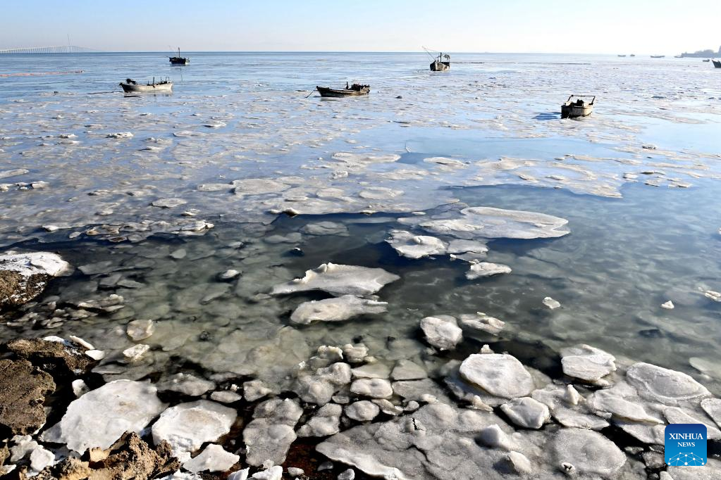 View of ice floes in coastal waters in Qingdao, E China (3)