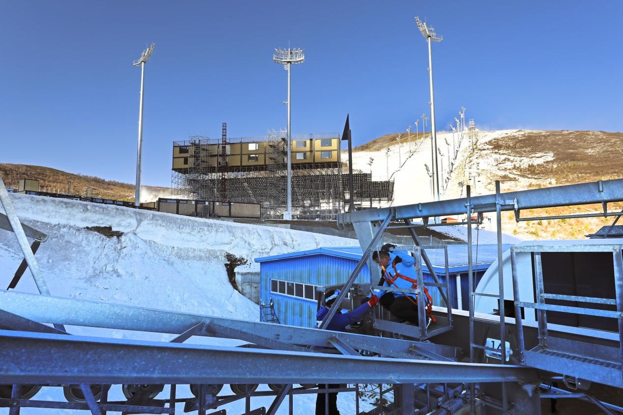 Officials of Zhangjiakou Administration for Market Regulation, north China’s Hebei province check the equipment in Genting Snow Park, Zhangjiakou, Dec. 22, 2021. Freestyle skiing and snowboarding competitions will take place in the park during the 2022 Olympic and Paralympic Winter Games. (People’s Daily Online/Wu Diansen)