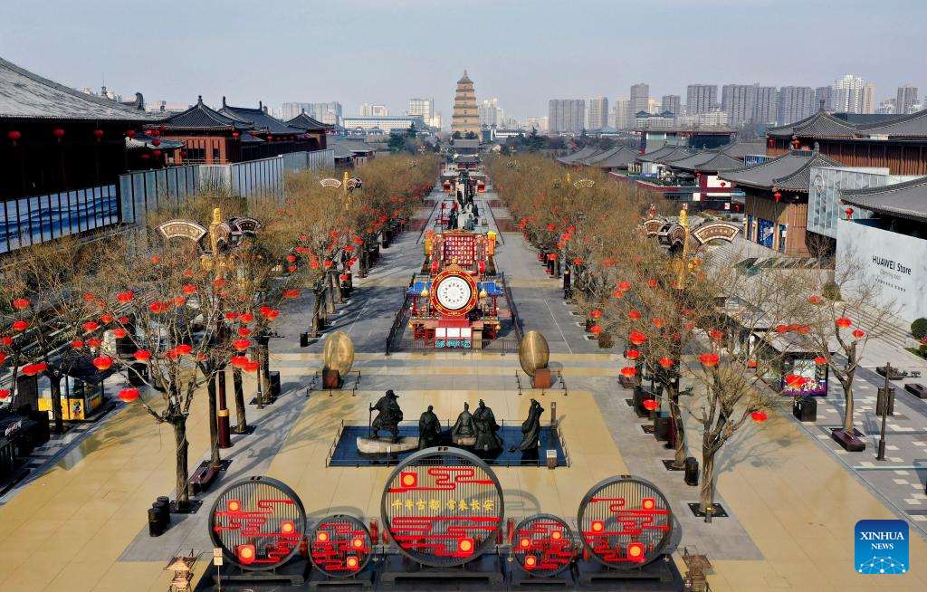 Aerial photo taken on Dec. 28, 2021 shows the empty Great Tang All Day Mall in Xi'an, capital of northwest China's Shaanxi Province. Authorities in Xi'an have upgraded epidemic control and prevention measures starting Monday, ordering all residents to stay indoors and keep away from gatherings except when taking nucleic acid tests. (Xinhua/Tao Ming)