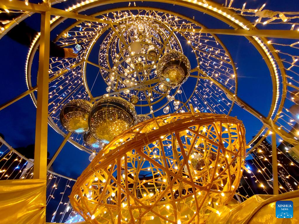 Photo taken on Dec. 27, 2021 shows a light installation to greet seasonal holidays in Istanbul, Turkey. (Xinhua/Shadati)