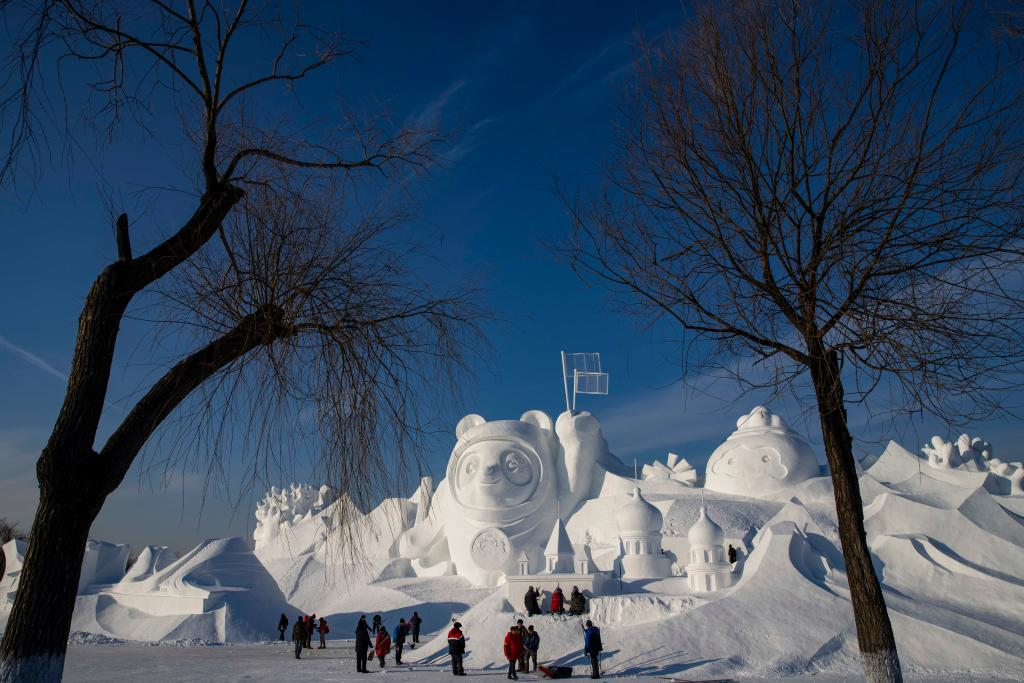 Workers finish main snow sculpture featuring Beijing 2022 mascots in Harbin (4)