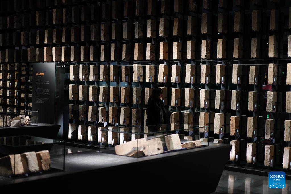 A woman visits the exhibition hall of the city wall museum of Nanjing in Nanjing, capital of east China's Jiangsu Province, Dec. 28, 2021. The Nanjing city wall museum opened for trial service here Tuesday. It will showcase the historic and cultural value of the Nanjing city wall from various aspects. (Xinhua/Ji Chunpeng)