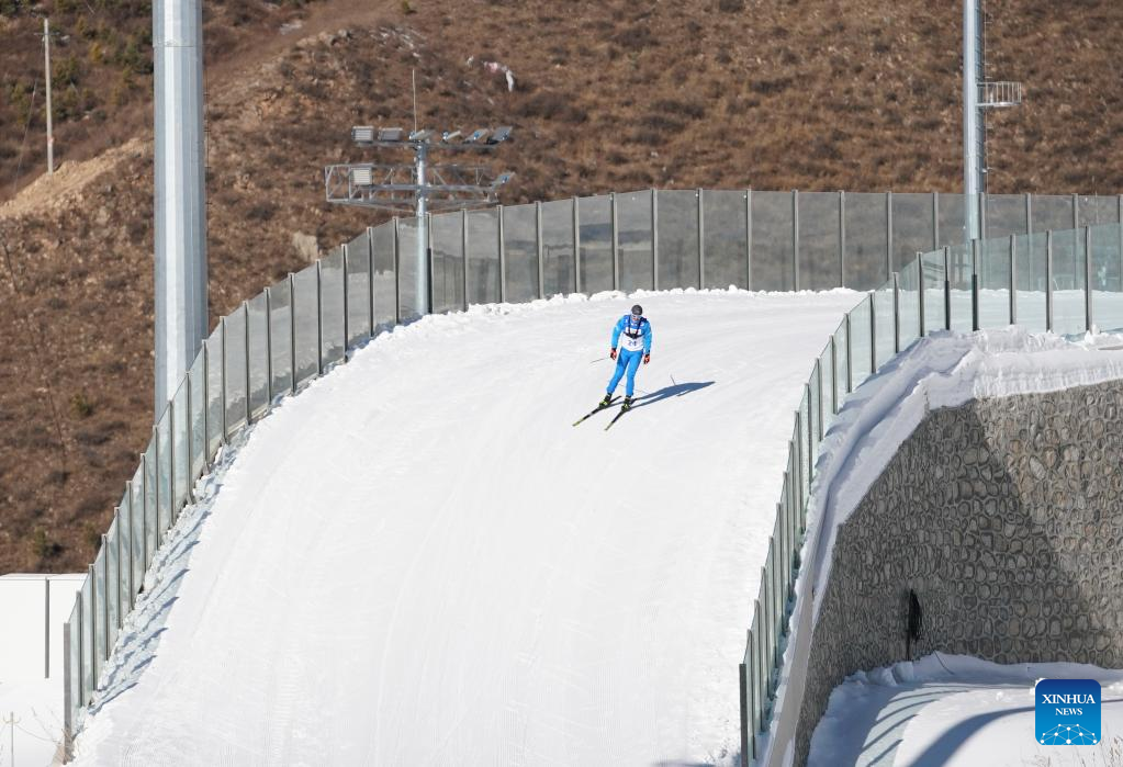 A participant conducts test on the track during the biathlon international training week at the National Biathlon Center in Zhangjiakou competition zone of the Beijing 2022 Olympic and Paralympic Winter Games, in Zhangjiakou, north China's Hebei Province, Dec. 28, 2021. (Xinhua/Mu Yu)