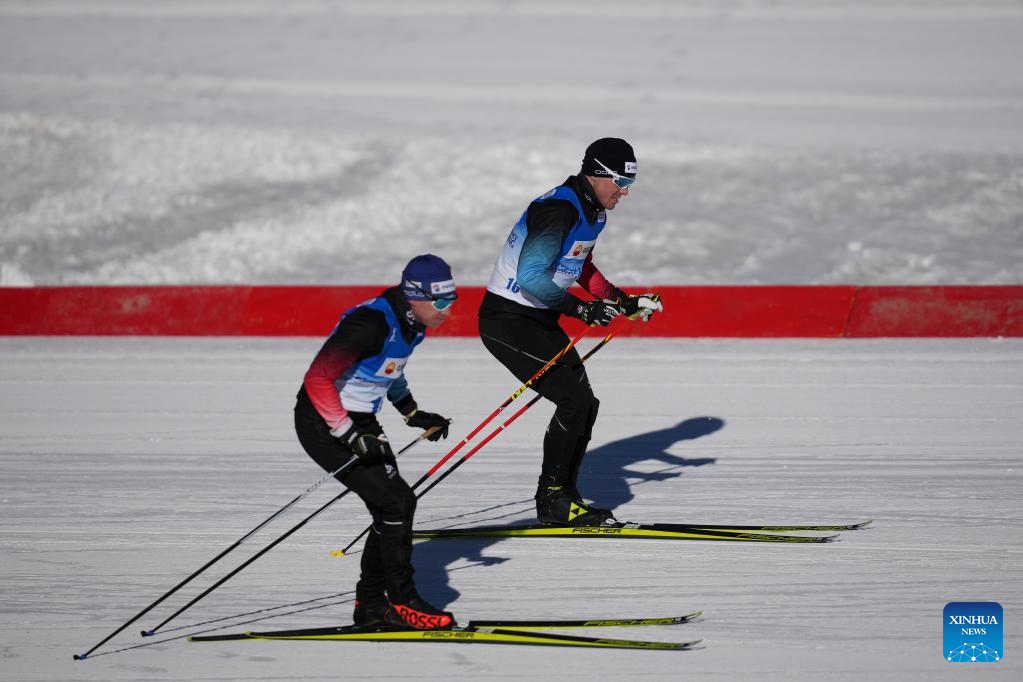 Participants conduct test on the track during the biathlon international training week at the National Biathlon Center in Zhangjiakou competition zone of the Beijing 2022 Olympic and Paralympic Winter Games, in Zhangjiakou, north China's Hebei Province, Dec. 28, 2021. (Xinhua/Mu Yu)