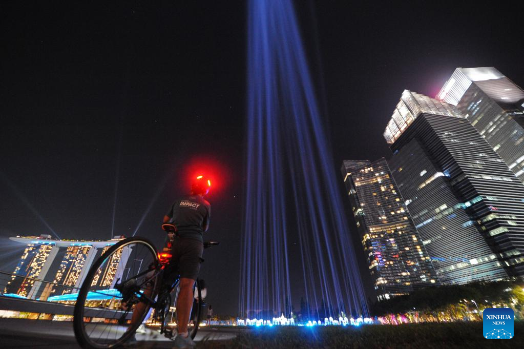 People view the countdown to 2022 light projection show held at Singapore's Marina Bay on Dec. 28, 2021. (Xinhua/Then Chih Wey)