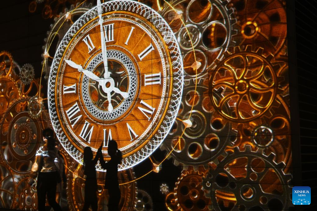 People view the countdown to 2022 light projection show held at Singapore's Marina Bay on Dec. 28, 2021. (Xinhua/Then Chih Wey)