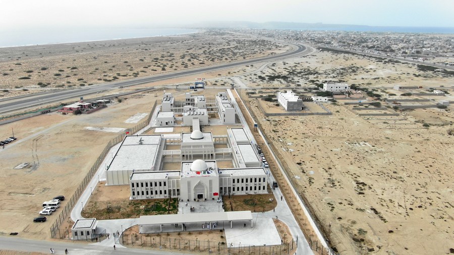 Aerial photo taken on Oct. 1, 2021 shows a view of the China-donated Gwadar Technical and Vocational Institute in southwest Pakistan's Gwadar. (Str/Xinhua)