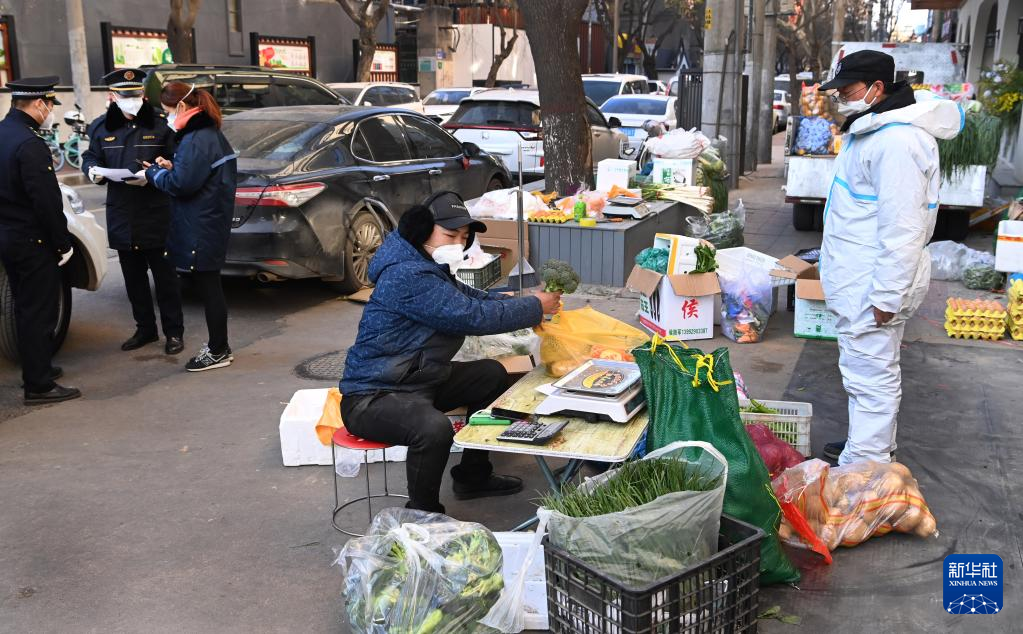 A temporary vegetable market is set up near a community under closed-off management in Xi'an, capital of northwest China's Shaanxi Province, Dec. 29, 2021.