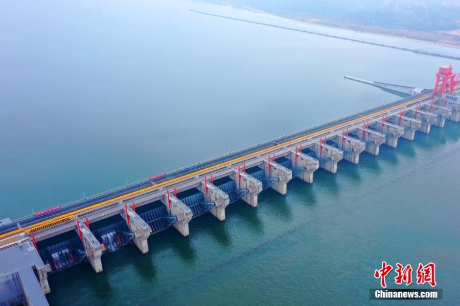 Aerial photo taken on Dec 28, 2021 shows Jinggangshan Navigation and Power Hub Project on the Ganjiang River in east China's Jiangxi province. (China News Service/Deng Heping)