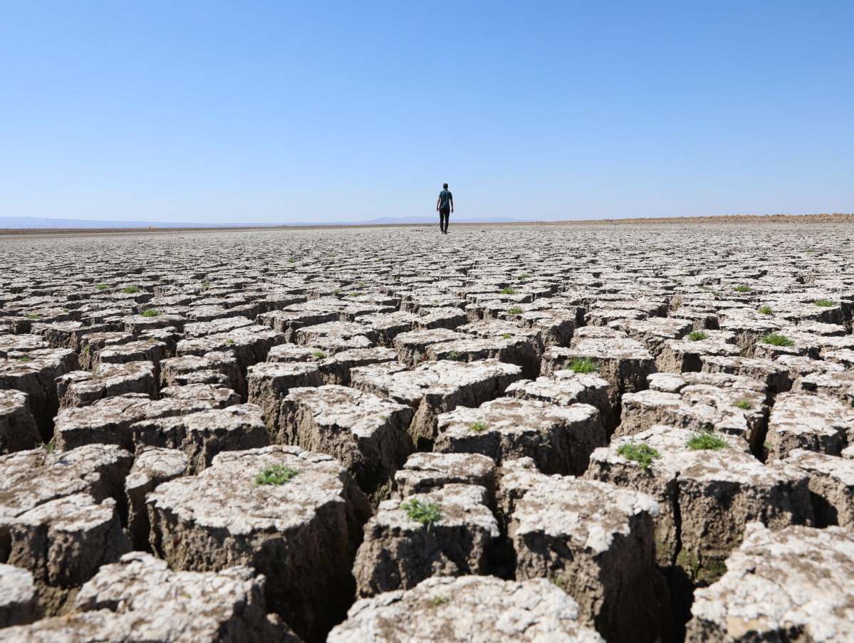 A view of the Devegecidi Dam Lake which is in danger of drought due to the climate change in Diyarbakir, Turkey, on Sept 21, 2021. [Photo/Xinhua]