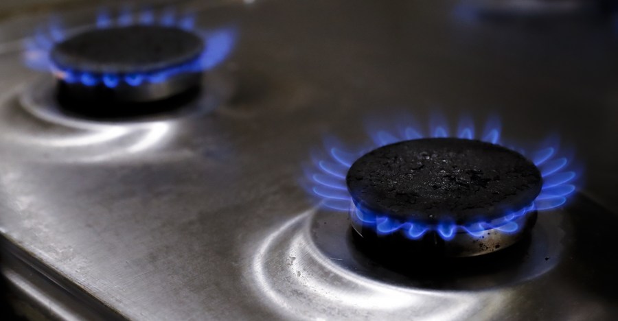 Photo taken on Oct. 8, 2021 shows burning rings on a gas cooker in London, Britain. (Xinhua/Han Yan)