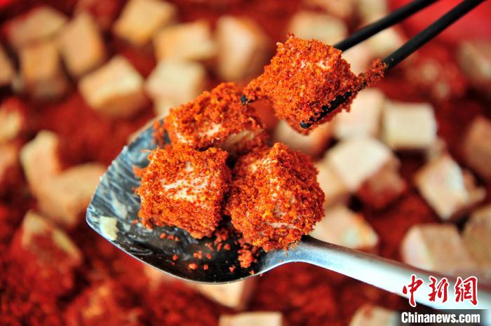 Located deep in the mountains in Yiling district of Yichang city, Dengcun boasts a 200-year history of producing fermented bean curd. The local residents have a tradition of making the specialty food during the winter season. The traditional craft contains a series of procedures, including grinding soya beans to make tofu, fermenting little tofu cubes and mixing them with chili powder, and then wrapping them in cabbage leaves. The craft was included on the list of intangible cultural heritage of Yichang city.