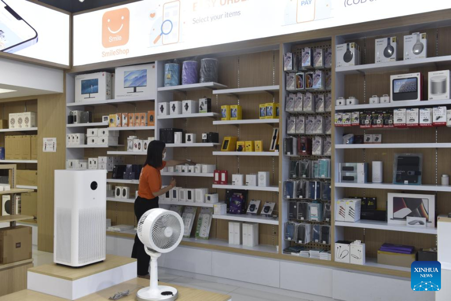 An employee sorts products at a brick-and-mortar store of Smile Shop in Phnom Penh, Cambodia, Dec. 21, 2021. The Regional Comprehensive Economic Partnership (RCEP), which is due to enter into force on Jan. 1, 2022, will promote cross-border e-commerce and narrow the development gap between developed and developing countries, said Jack Lee, chief executive officer and founder of online market Smile Shop in Cambodia.