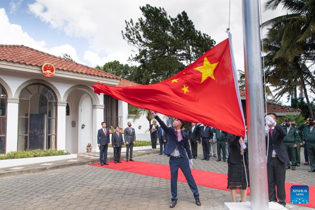 China officially reopens its embassy in Managua, Nicaragua, Dec. 31, 2021, after the two countries resumed diplomatic relations on Dec. 10. (Xinhua/Xin Yuewei)