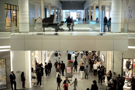 People, mostly wearing masks, shop at a shopping mall in Santa Clara of San Francisco Bay Area, the United States, Dec. 26, 2021. (Xinhua/Wu Xiaoling)