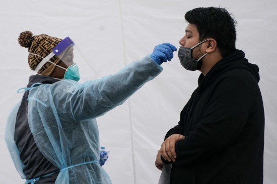 A man receives COVID-19 test in Washington, D.C., the United States, on Dec. 30, 2021. (Photo by Ting Shen/Xinhua)