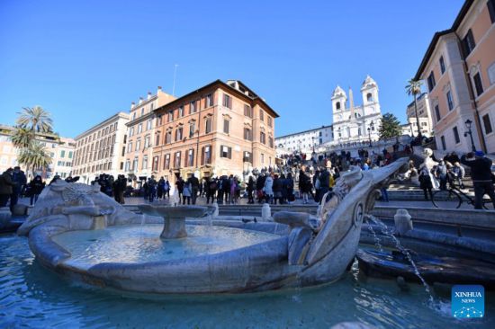 People visit the Piazza di Spagna in Rome, Italy, on Jan. 1, 2022. (Xinhua/Jin Mamengni)