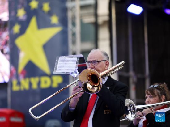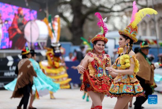 People take part in the annual New Year's Day Parade in London, Britain, Jan. 1, 2022. (Xinhua/Li Ying)