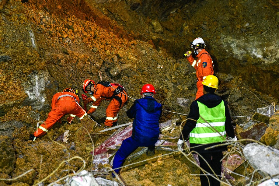 Rescuers work at the site of a landslide in Bijie, southwest China's Guizhou Province, Jan. 4, 2022.(Xinhua/Yang Wenbin)