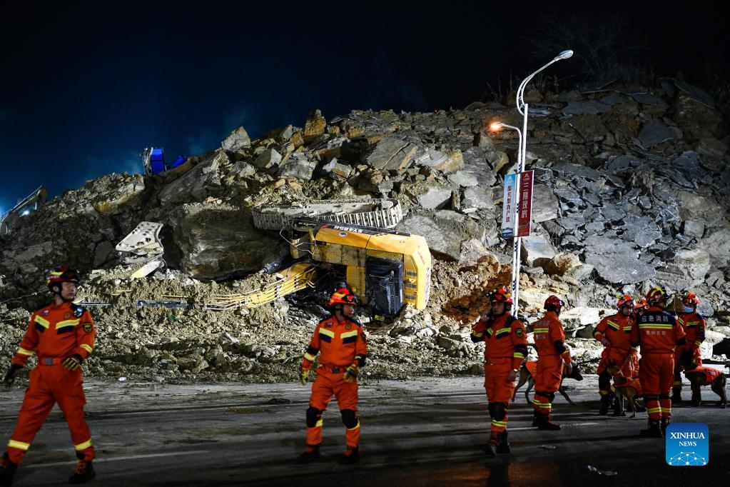 Rescuers work at the site of a landslide in Bijie, southwest China's Guizhou Province, Jan. 4, 2022. (Xinhua/Yang Wenbin)