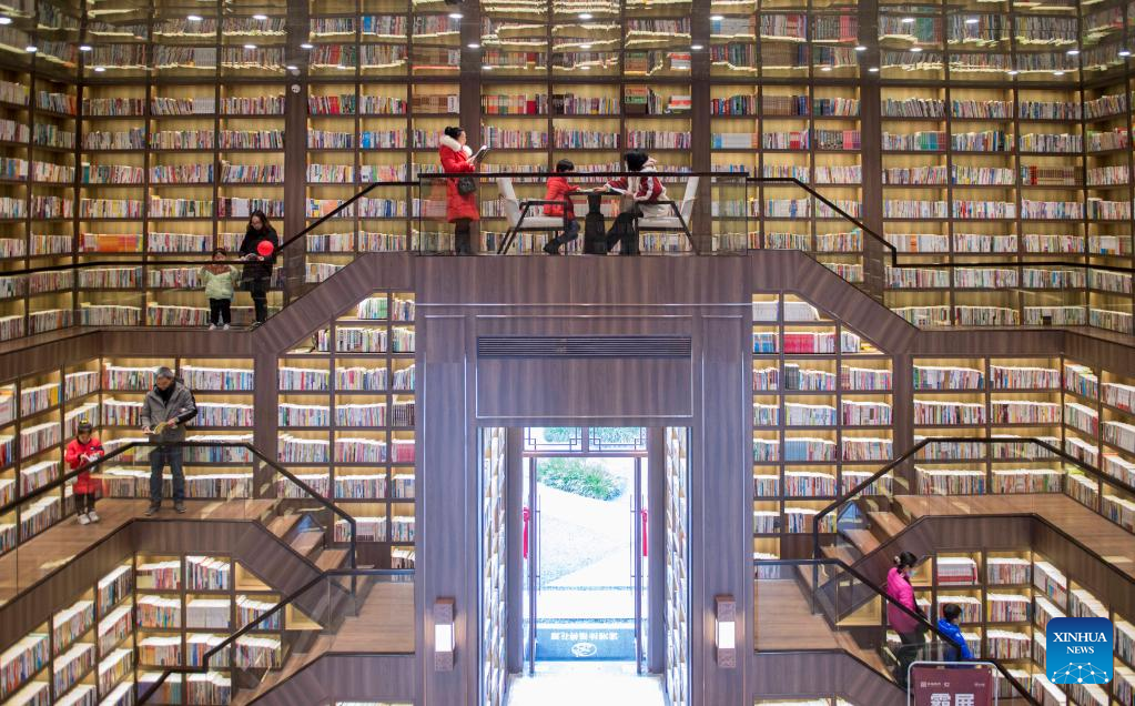 People read books during the New Year holiday at a library in Jiangyong County of Yongzhou City, central China's Hunan Province, Jan. 2, 2022. (Photo by Jiang Keqing/Xinhua)