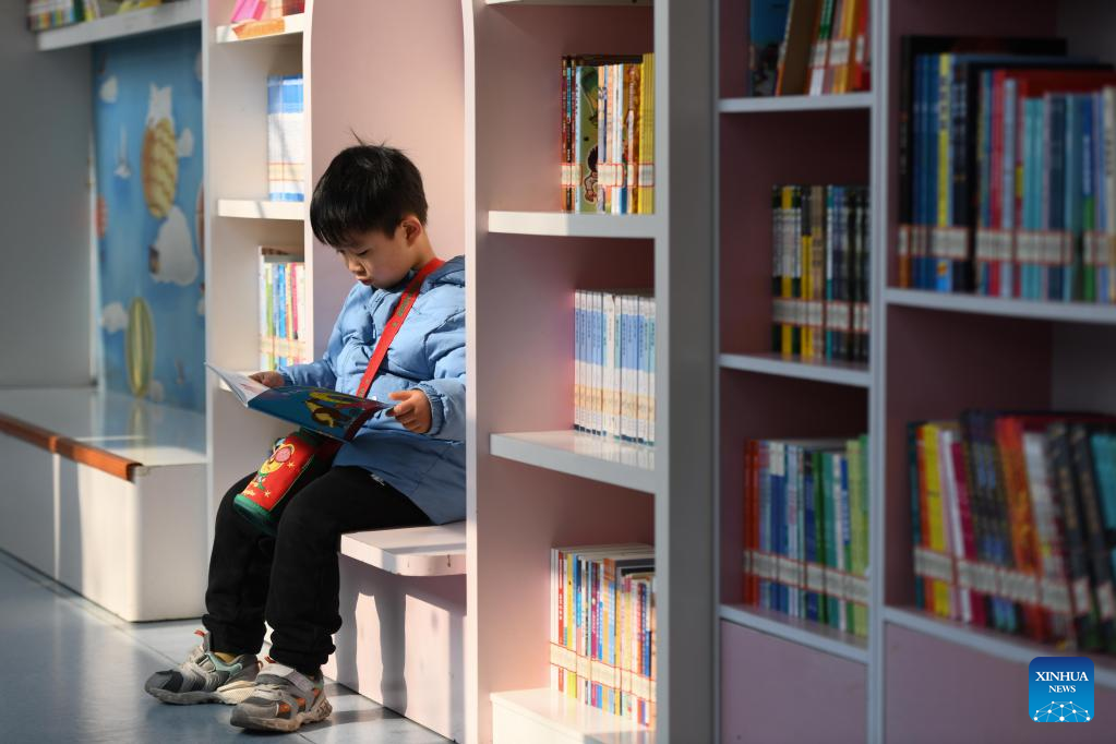A child reads a book during the New Year holiday at a library in Hefei, east China's Anhui Province, Jan. 2, 2022. (Xinhua/Zhang Duan)