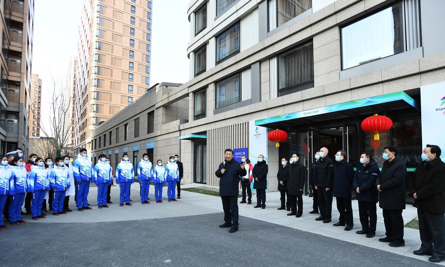 Chinese President Xi Jinping, also general secretary of the Communist Party of China Central Committee and chairman of the Central Military Commission, visits the Athletes' Village in Beijing, capital of China, Jan. 4, 2022. Xi inspected the preparations for the 2022 Olympic and Paralympic Winter Games in Beijing on Tuesday. (Xinhua/Yan Yan)