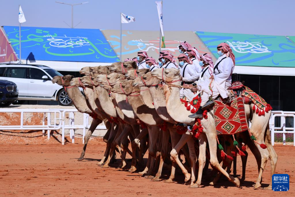People ride camels for a parade during the King Abdulaziz Camel Festival in north of Riyadh, Saudi Arabia, on Jan. 5, 2022. The festival kicked off here on Dec. 1, 2021, with the participation of about 33,000 camel owners. (Xinhua/Wang Haizhou)