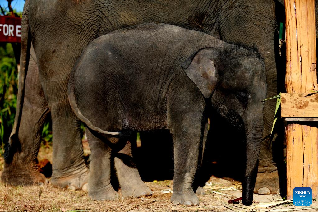A baby elephant is seen at the Wingabaw Elephant Camp in Bago region, Myanmar, on Jan. 7, 2022. (Xinhua/U Aung)