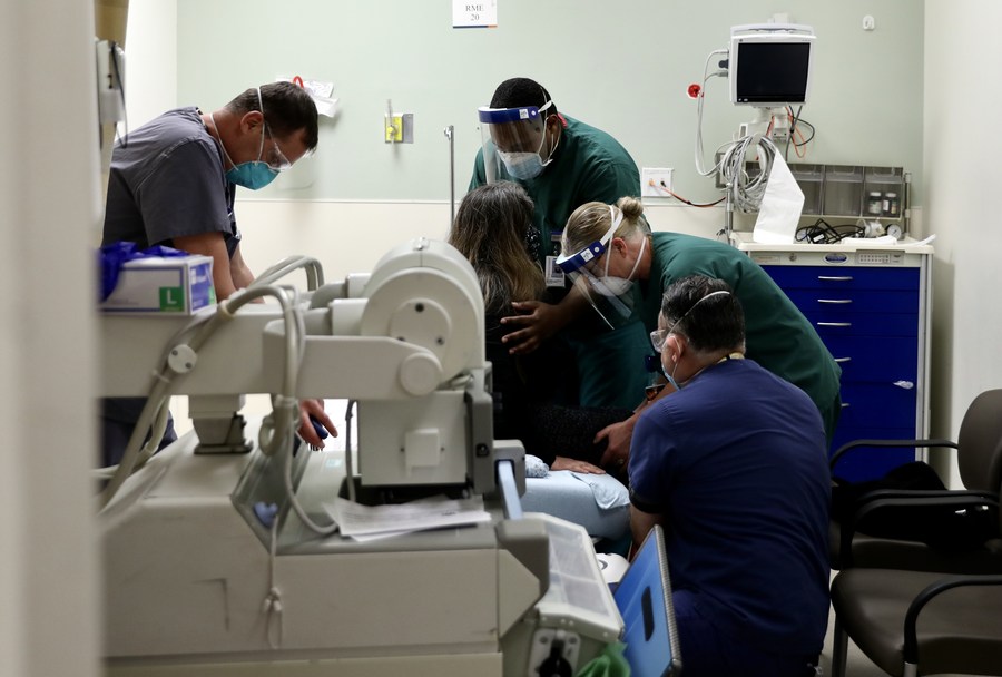 WASHINGTON, Jan. 10 (Xinhua) -- The latest COVID-19 surge in the United States driven by the highly infectious Omicron variant is leading to critical staffing shortages across the nation.