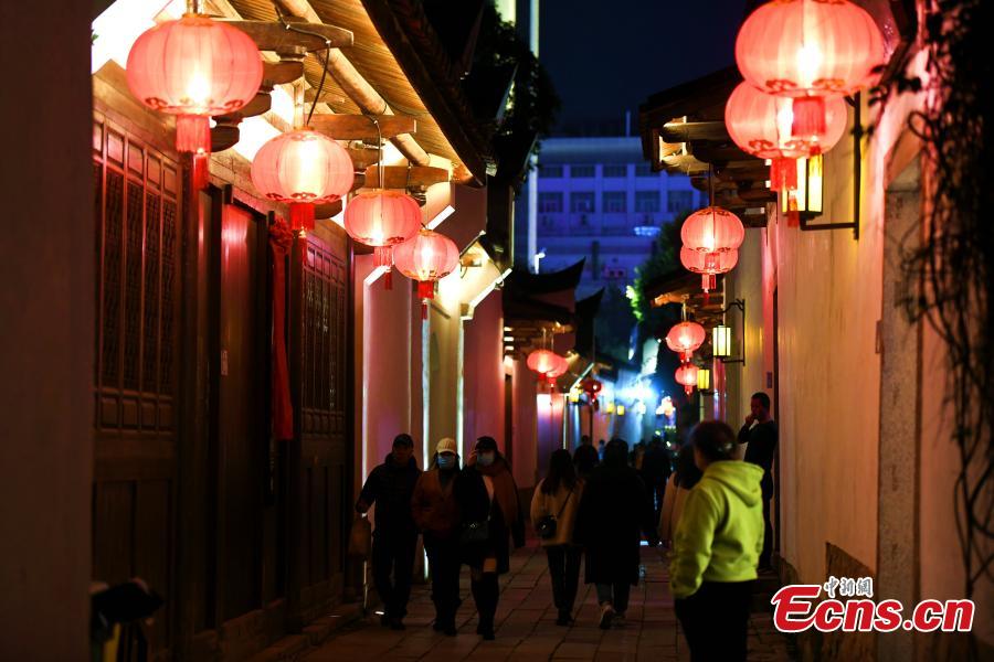 Festive lanterns light up in Nanhou Street in Fuzhou, capital of China’s Fujian Province, Jan. 8, 2022 . (Photo: China News Service/Wang Dongming)