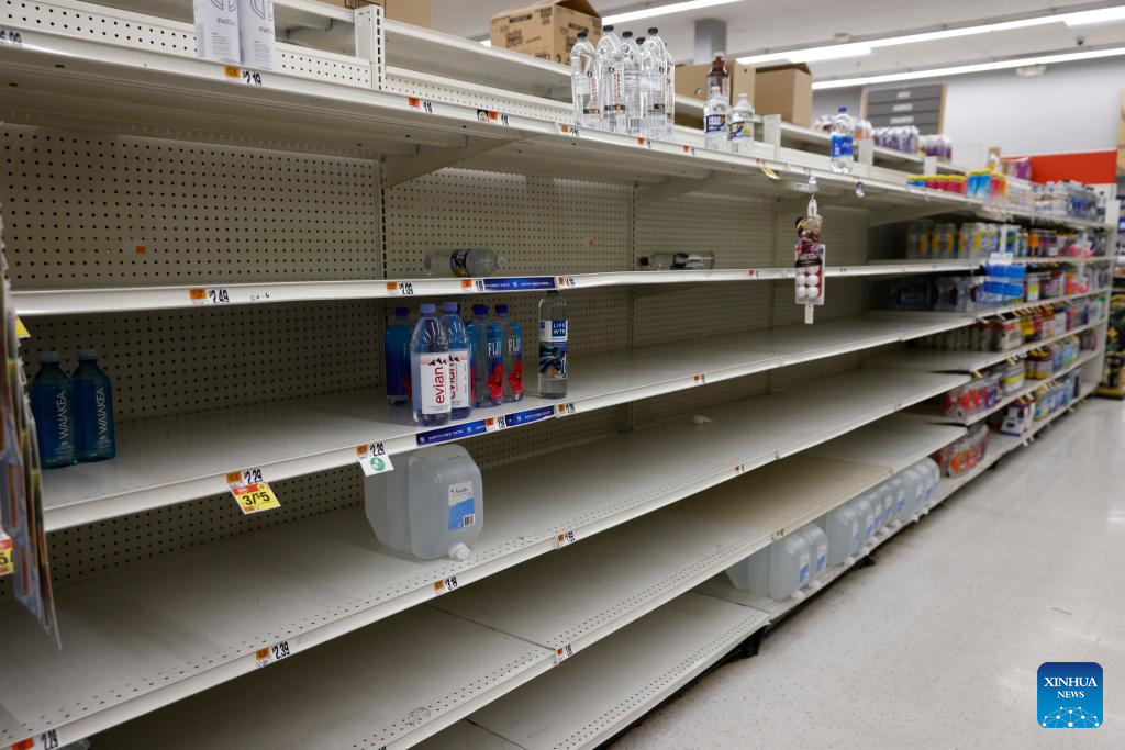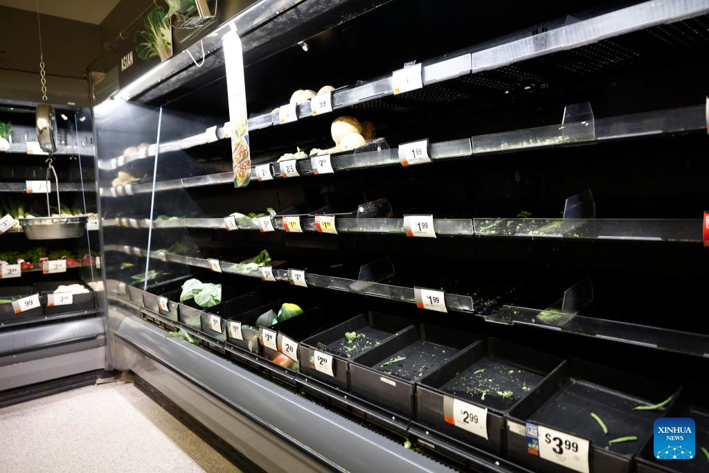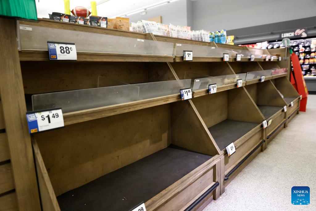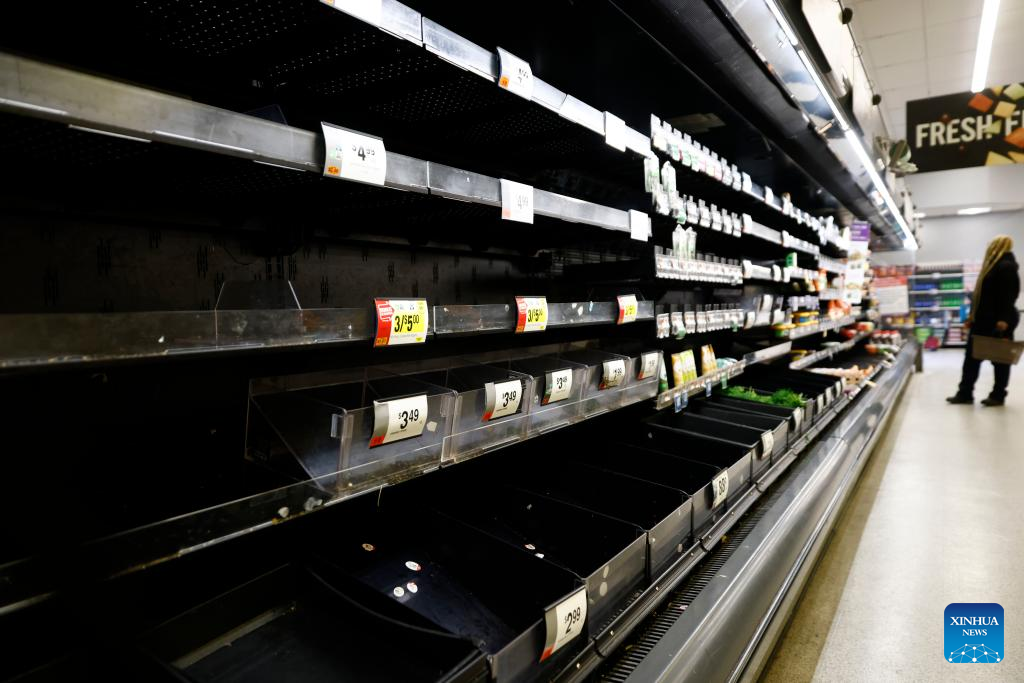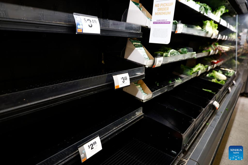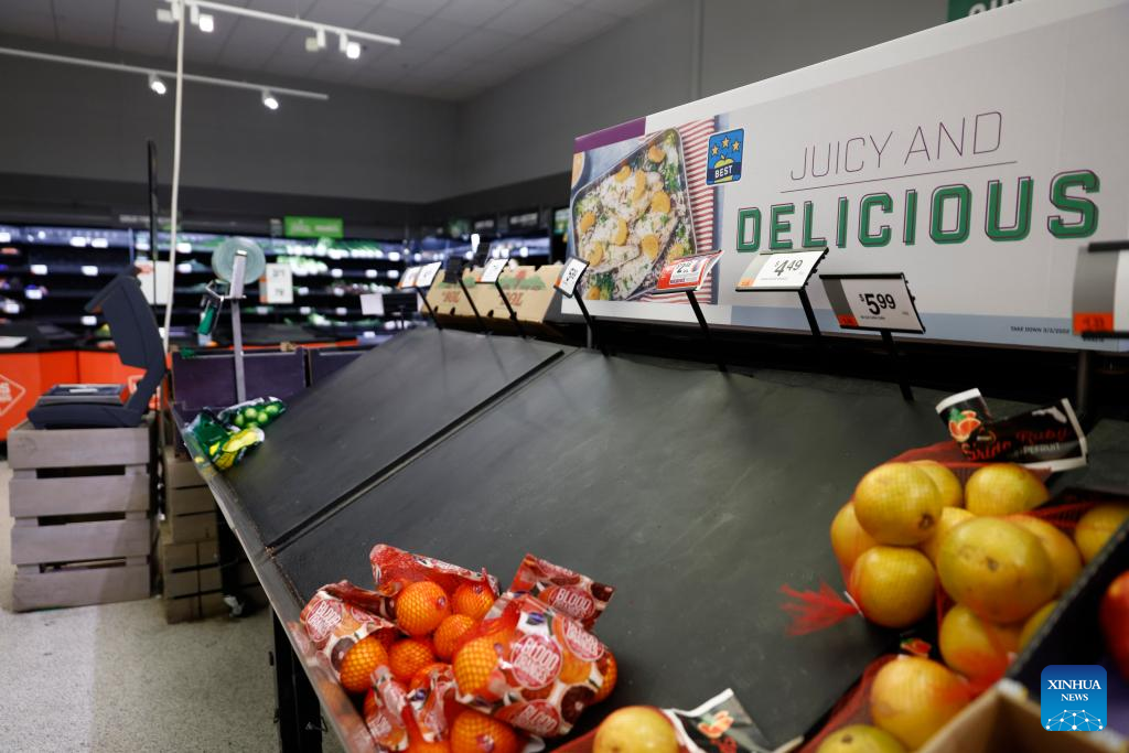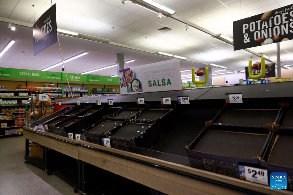 Some shelves are seen nearly empty at a grocery store in Washington, D.C., the United States on Jan. 10, 2022. (Photo by Ting Shen/Xinhua)
