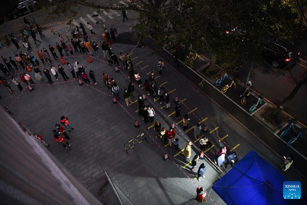 Citizens queue up for nucleic acid testing at a testing site in Shenzhen, south China's Guangdong Province, Jan. 11, 2022. (Xinhua/Liang Xu)