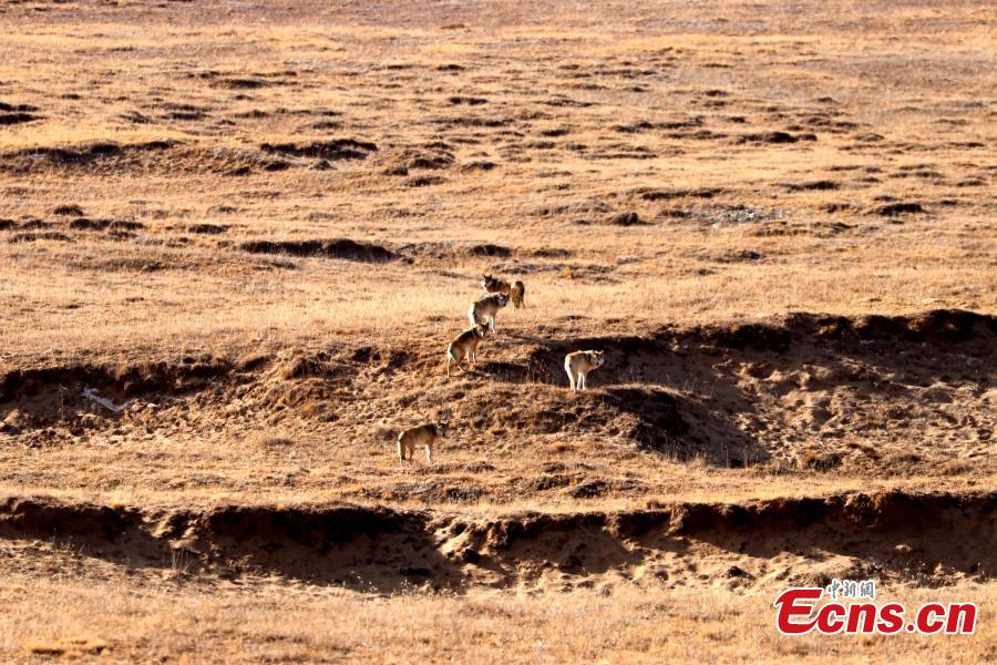 Photo shows wolves at the source of the Yellow River section of the Sanjiangyuan National Park in Golog Tibetan autonomous prefecture of Northwest China's Qinghai province. (Photo: China News Service/Guo Qing)