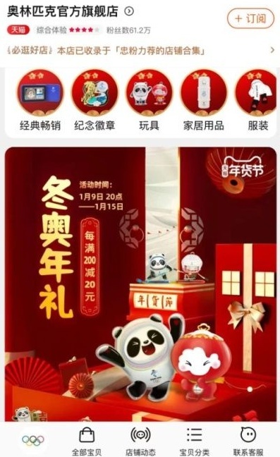 The photo shows the Olympic store on Tmall.  (Photo/chinanews.com)